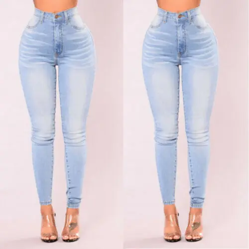 Женские облегающие джинсы, Однотонные эластичные брюки с высокой та...