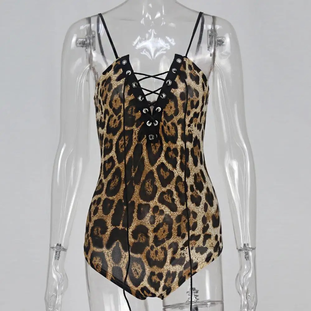 Женское боди без рукавов с V-образным вырезом и леопардовым принтом