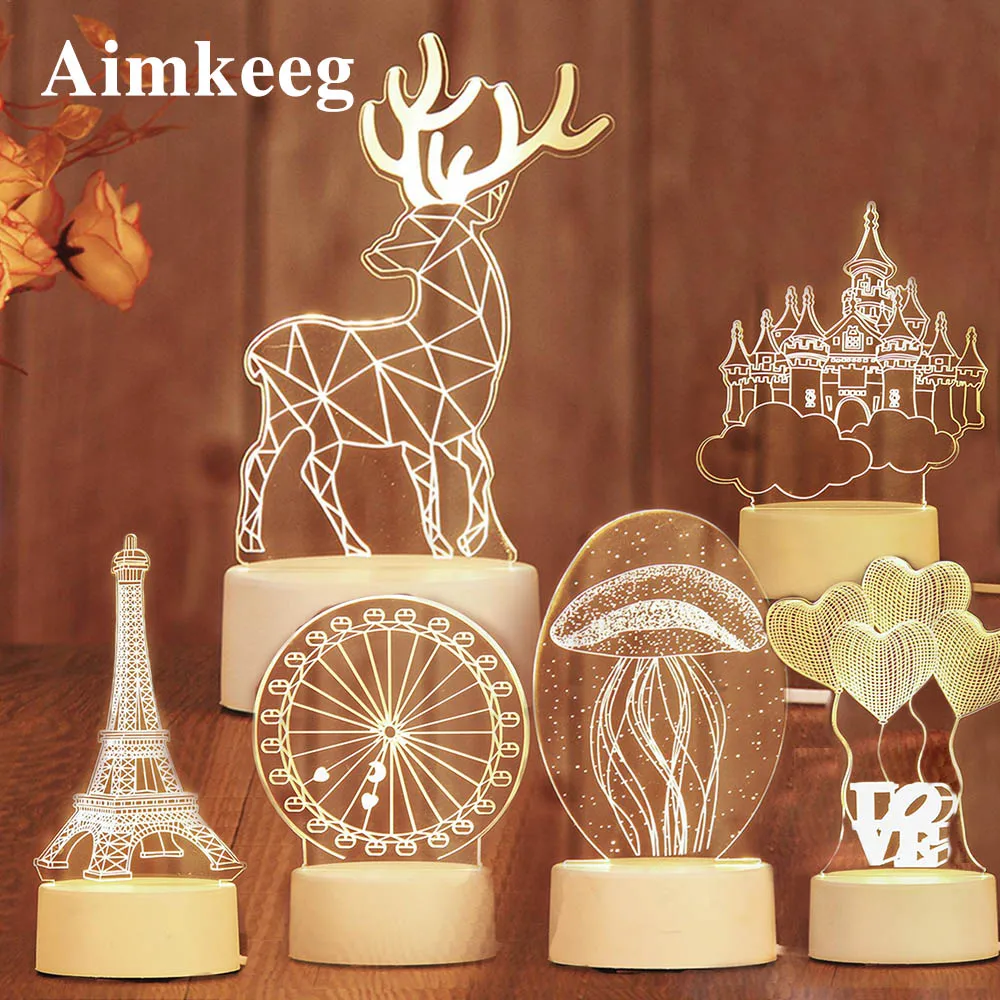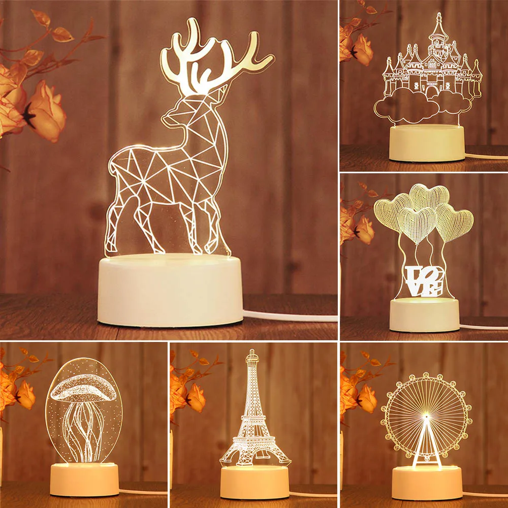 -3D стереоскопический визуальный узор: Используйте только 2D Акриловый элемент, чтобы создать привлекательный 3D стереоскопический визуальный узор и светильник с usb-адаптером питания, вы можете подключить его к домашней розетке или usb-порту компьютера.