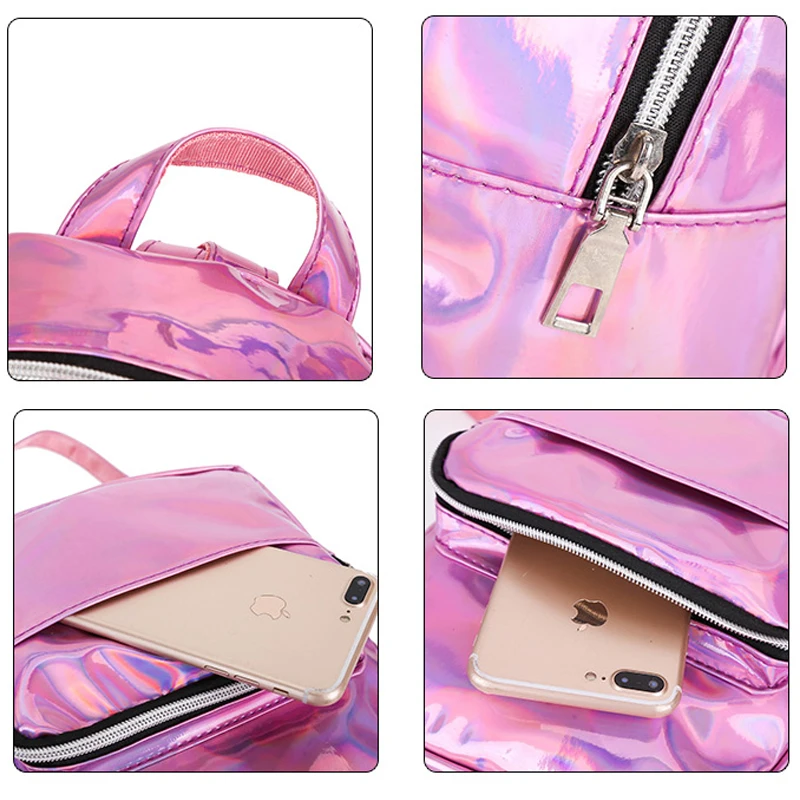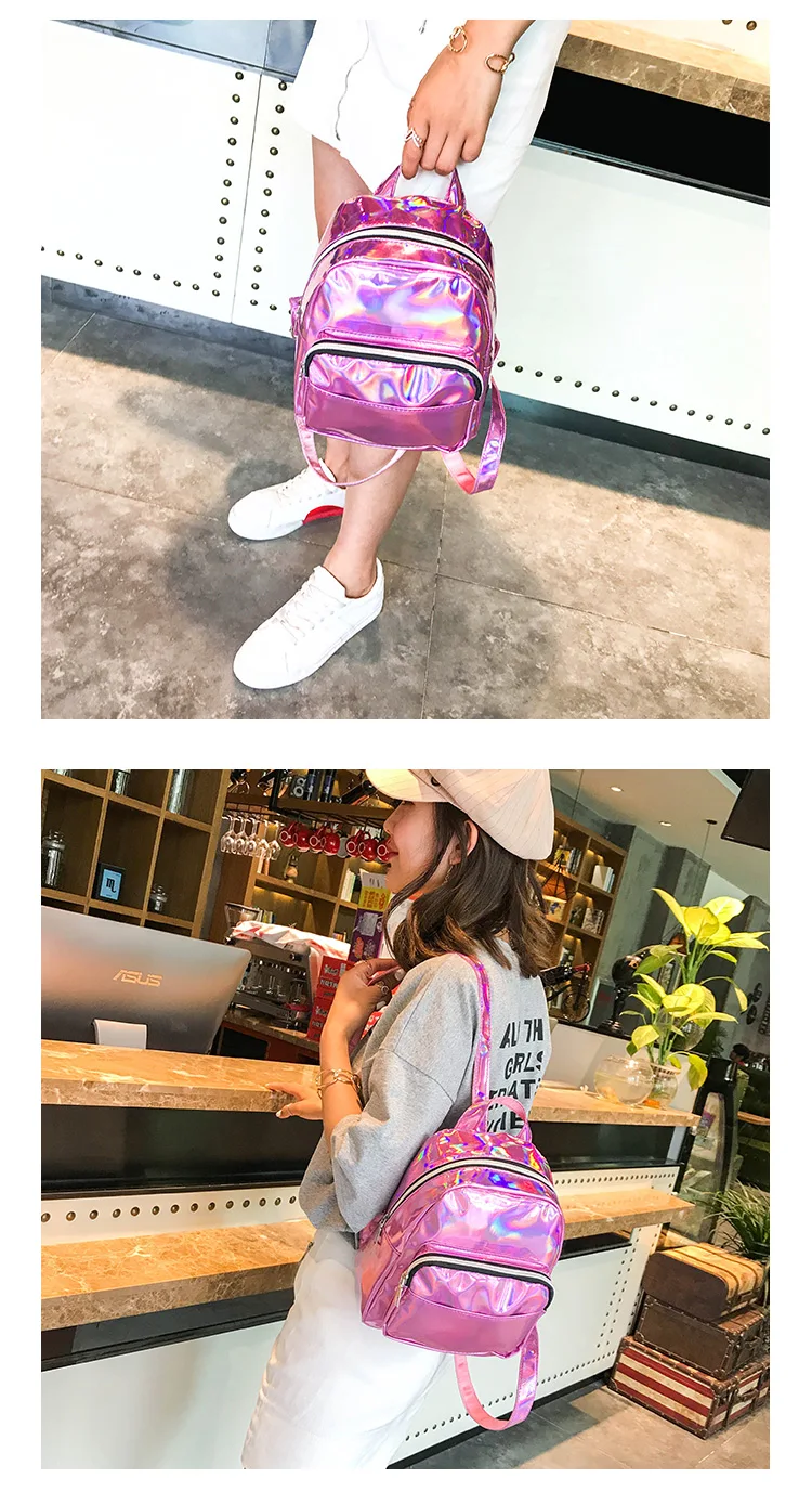 Серебряный маленький голографический рюкзак женский элегантный дизайн школьная блестящая лазерная мини дорожная Студенческая Милая Дамская кожаная сумка
