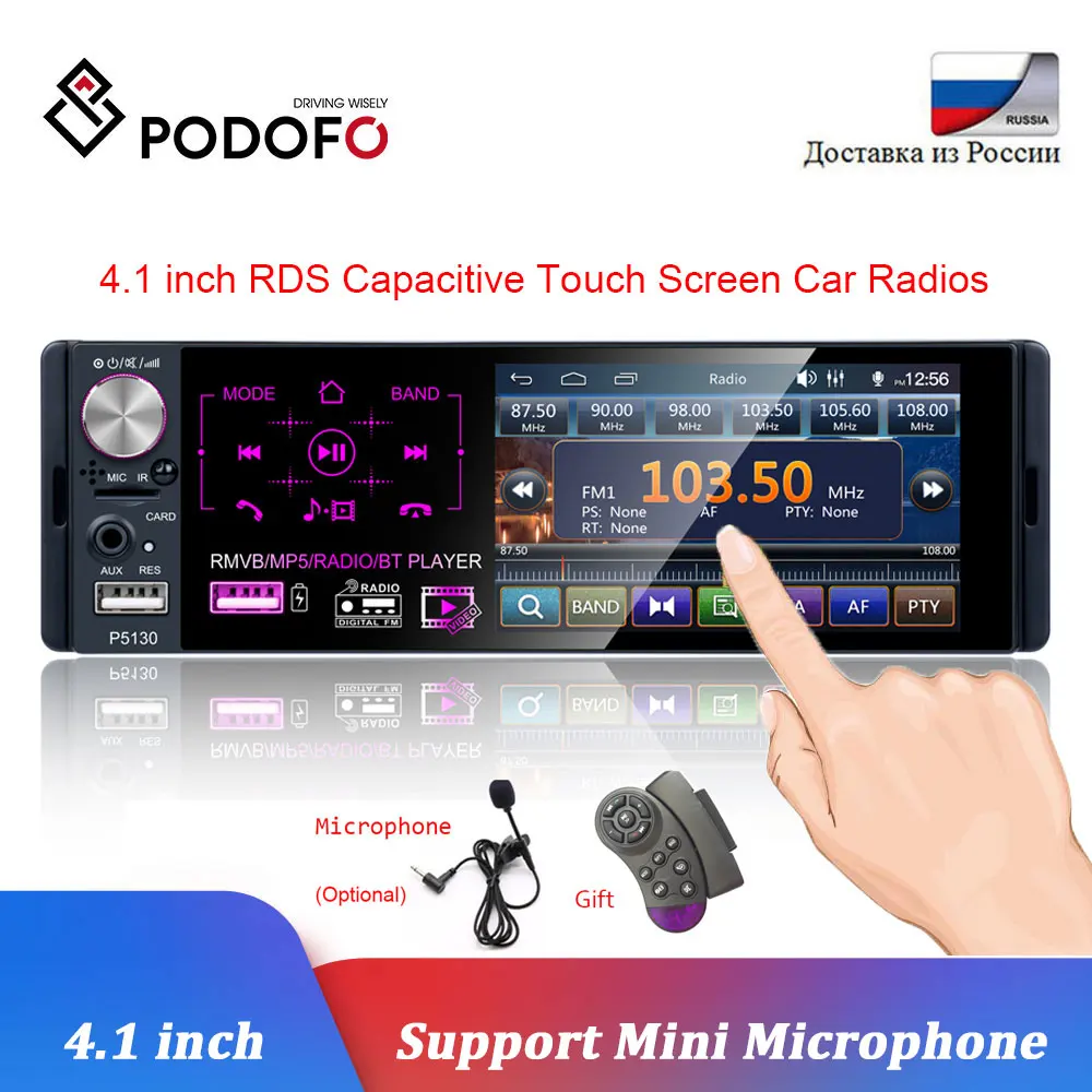 Podofo 1 din автомобильное радио 4,1 "дюймовый сенсорный экран Авторадио Bluetooth стерео Мультимедиа MP5 плеер RDS FM USB поддержка микрофона