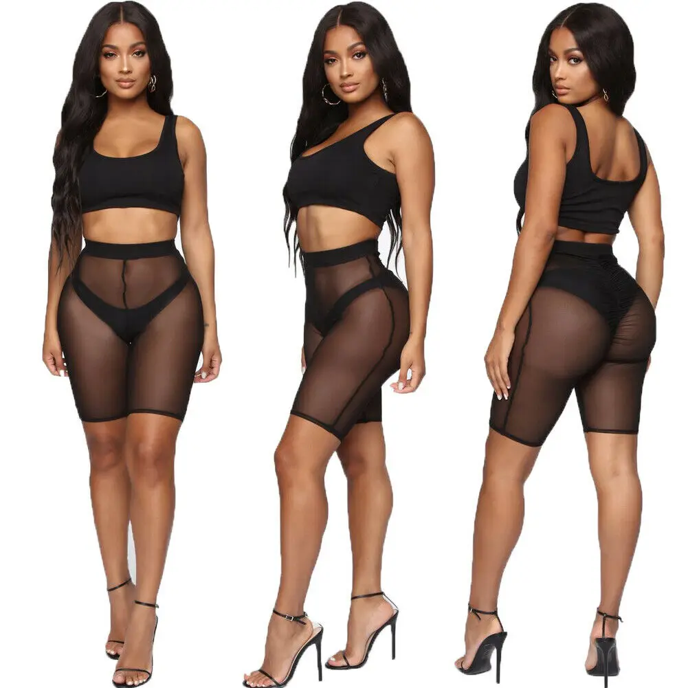 Новые женские модные прозрачные сетчатые шорты, леггинсы, сетчатые брюки, накидка для бикини
