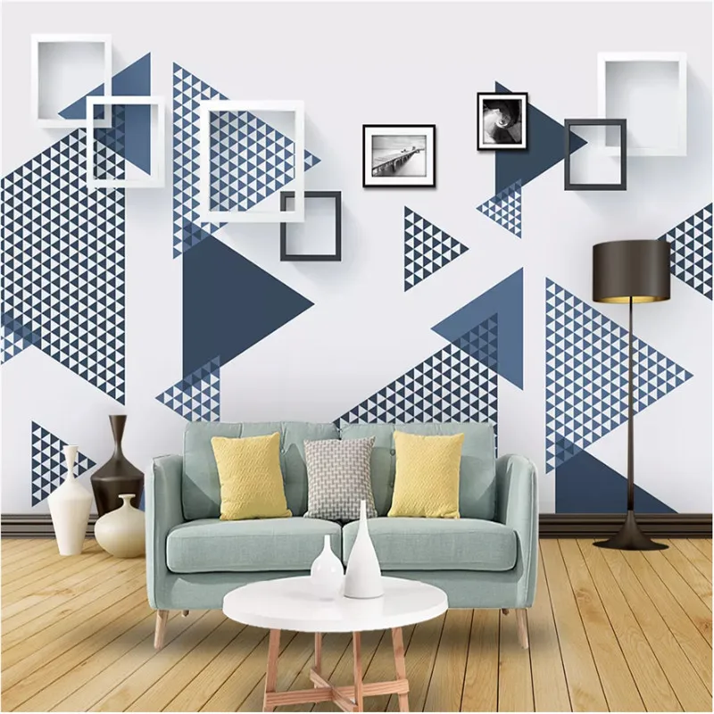 Современный минималистичный абстрактный геометрический Графический фон для гостиной ТВ Настенный декор Настенные обои синие и белые обои 3D