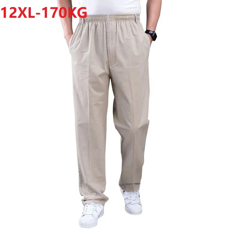 Брюки-карго мужские эластичные, простые повседневные Хлопковые Штаны, черные прямые, большие размеры 9XL, 12XL 13XL, серого цвета, весна-лето