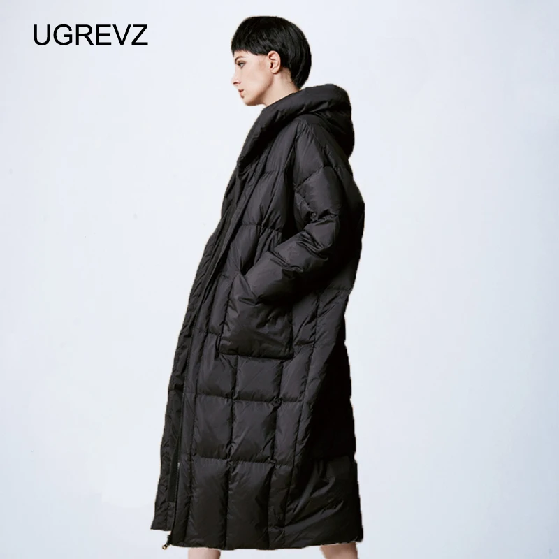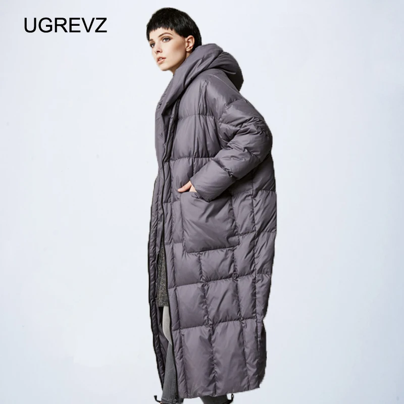 Женское длинное пуховое пальто, зимняя теплая парка свободного кроя с капюшоном, размера плюс
