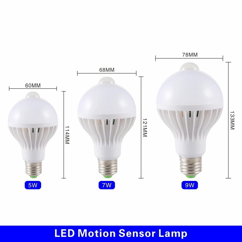 Светодиодная лампа, 2 шт., 3 Вт, 5 Вт, 7 Вт, 9 Вт, инфракрасный датчик движения, 220 В переменного тока