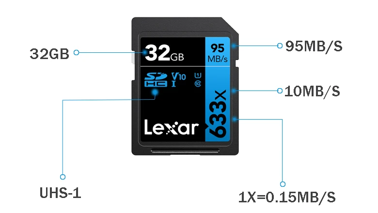 ⑥ Предназначен для DSLR среднего диапазона, HD-видеокамеры, 3D-камеры, профессиональных карт Lexar 633x SDHC/SDXC UHS-I, что позволит вам быстро запечатлеть, И передача высококачественных фотографий потрясающего видео 1080p full-HD, 3D и 4K со скоростью чтения до 633x (95 МБ/с.).⑥ Эти карты класса 10 используют технологию UHS-I для обеспечения высокоскоростной производительности.