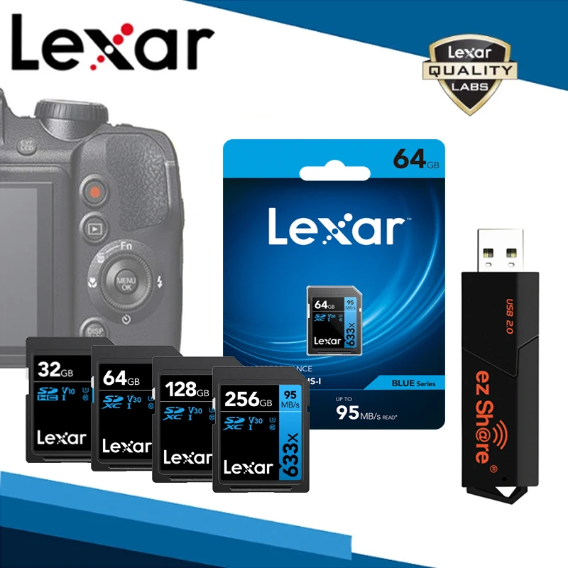 Карта памяти Lexar 633x SD, SDXC, USB 2,0, 32 ГБ, UHS-I ГБ, 512 ГБ, класс 10, 256 ГБ, V30, 128 ГБ, U3