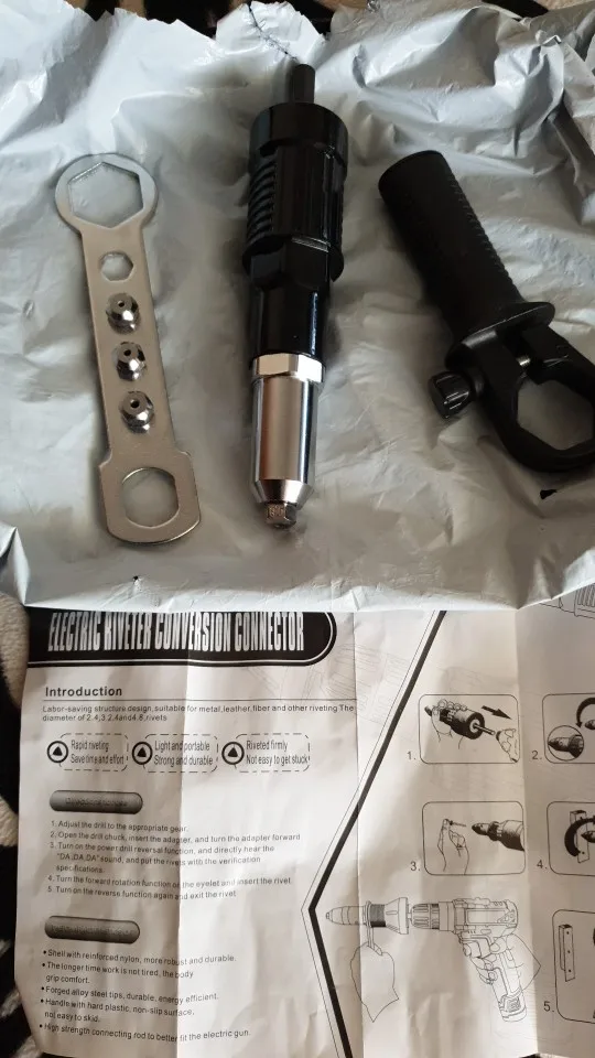Винт адаптера подключается к электродрели, а Электрический заклепной пистолет быстро преобразуется. Легко устанавливается.