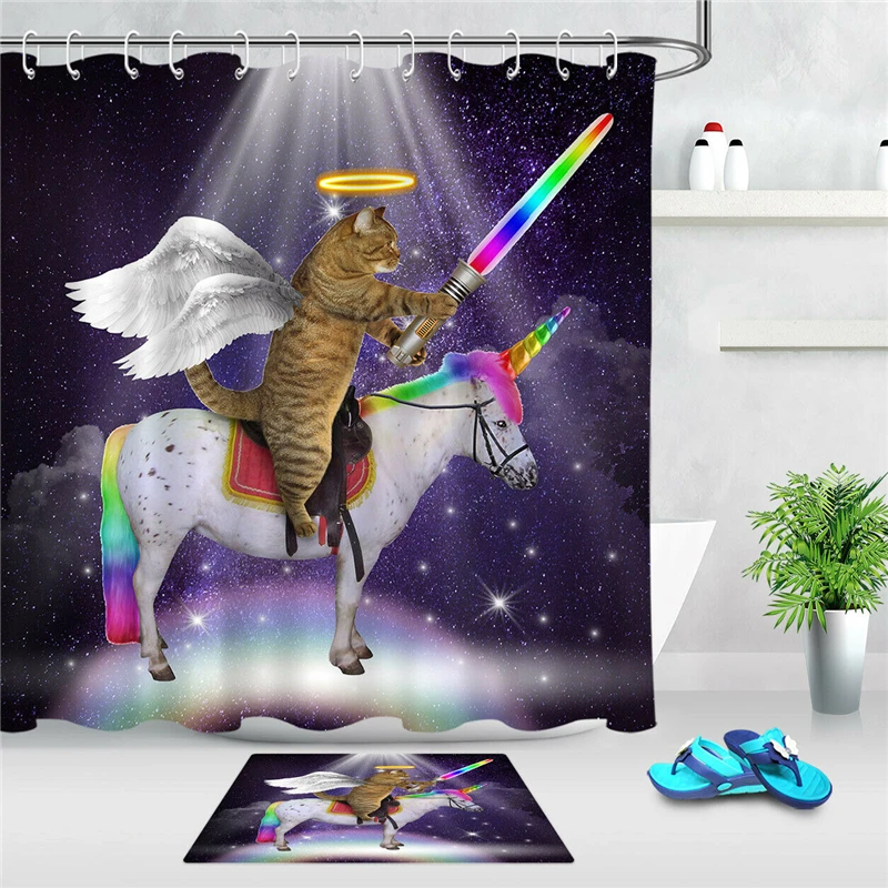 Забавный кот Ленивец собака с радужной пиццей Тако в Галактике занавеска для душа
