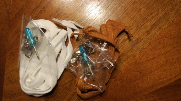 Всё отлично. Хорошего качества резиновые шнурки, в комплекте штук восемь винтиков и отвёртка.