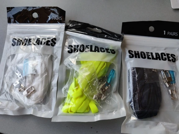 Доставка очень долгая. Шнурки слишком эластичные, но несмотря на это задумка неплохая и удобная. В установленном виде смотрятся стильно и скромно. Удалось избавится от вечно мешающихся концов шнурков.