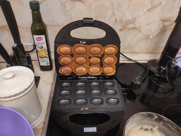 Работает. Единственное, прямо очень трудно мыть ее. Но, думаю, это касается всех электрических орешниц. Ещё минус в том, что орешки ну очень толстые. До этого была советская для газа. Орешки получались тоньше и более круглые. Влезало больше начинки. Тут они толстые и более плоские(( упаковано отлично. Дошла быстро!