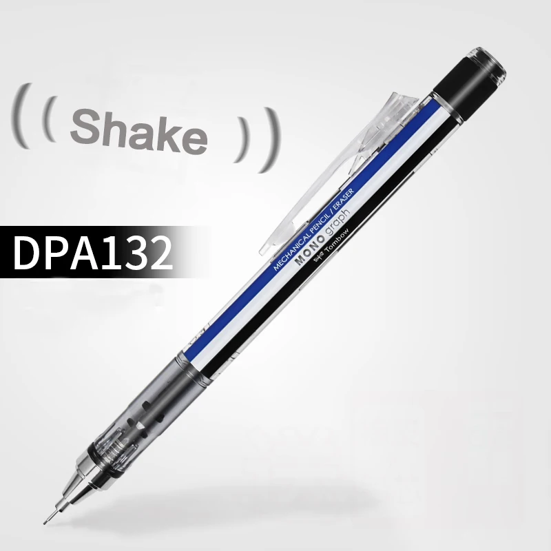 Очень крутой карандаш хорошего качества. Металлический носик, приятный на ощупь прозрачный пластик. Может выдвигать стержень за счёт встряхивания. В колпачке длинный выдвигающийся сменный ластик. В карандаше с завода вставлено 2 стержня.