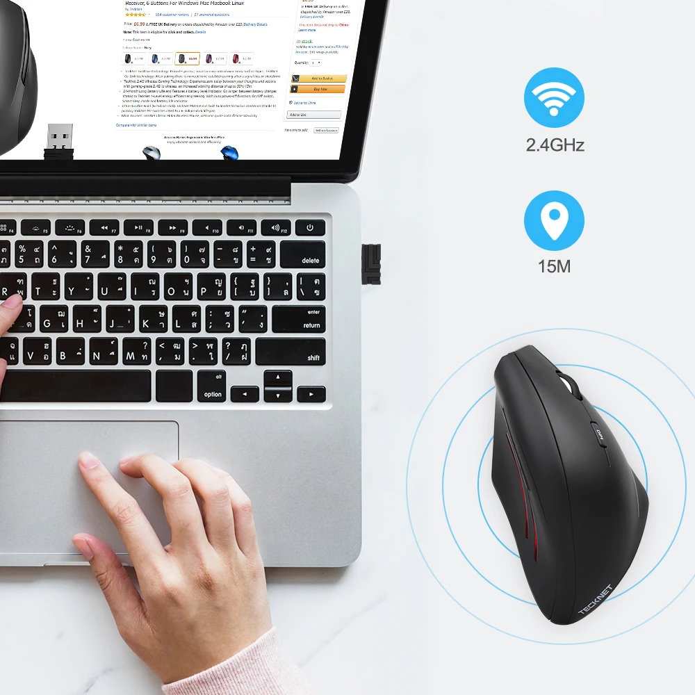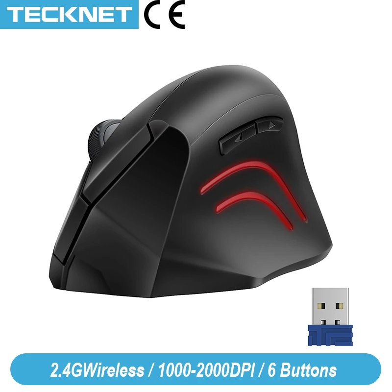 Вертикальная беспроводная мышь TeckNet 2,4 ГГц, Nano эргономичная оптическая мышь, 3 регулируемых уровня 20001200800DPI Мышь для ПК, компьютера
