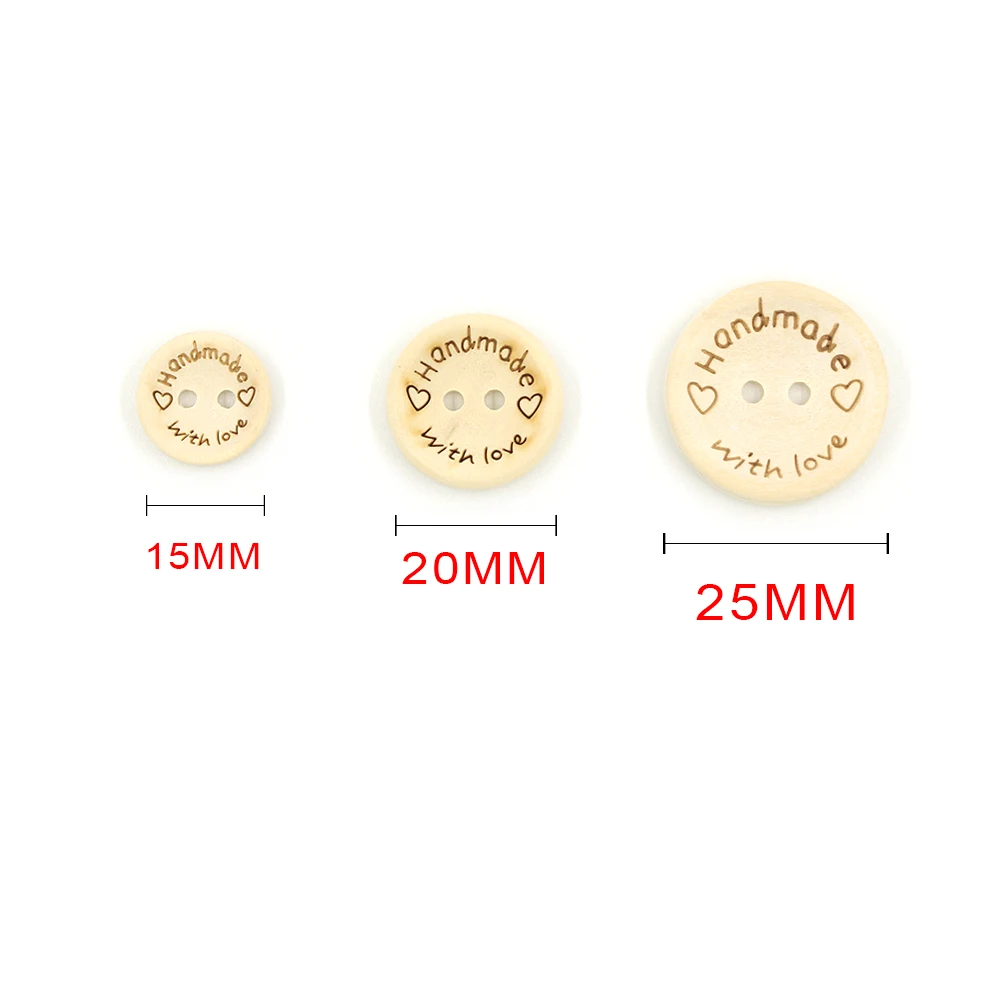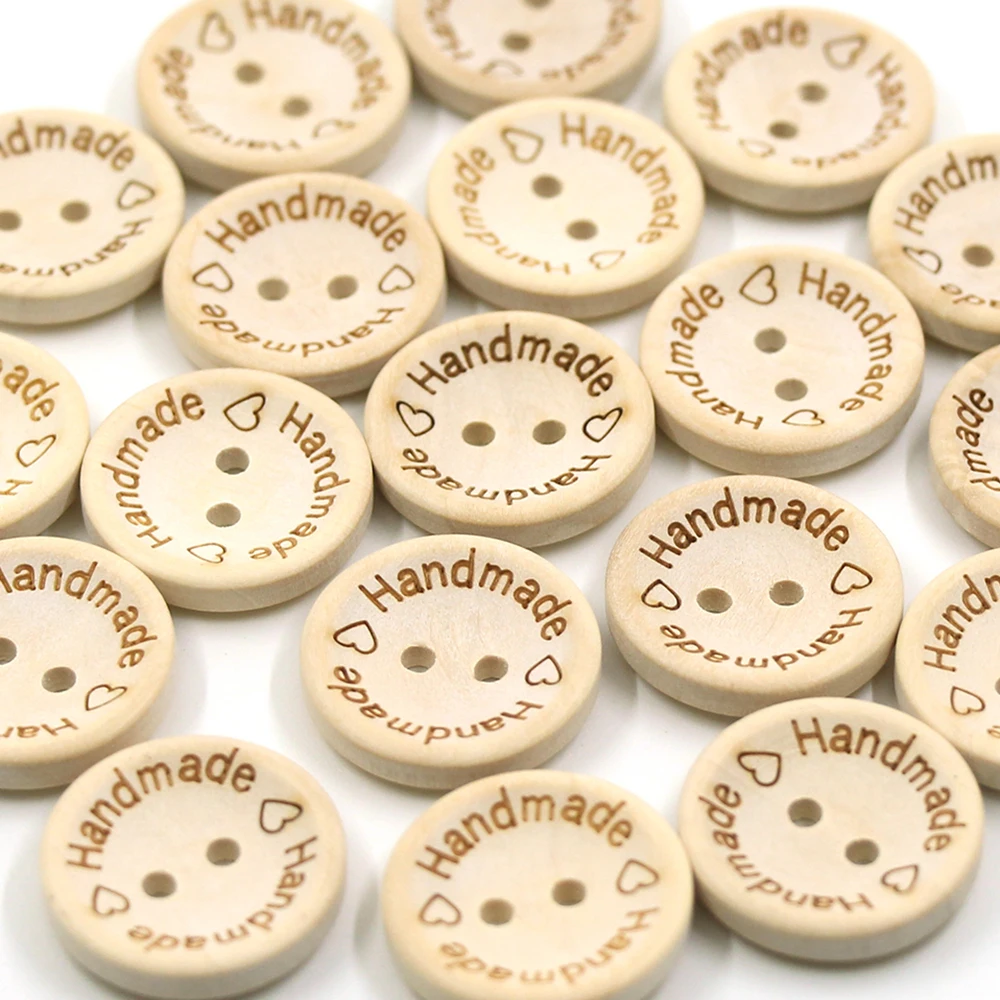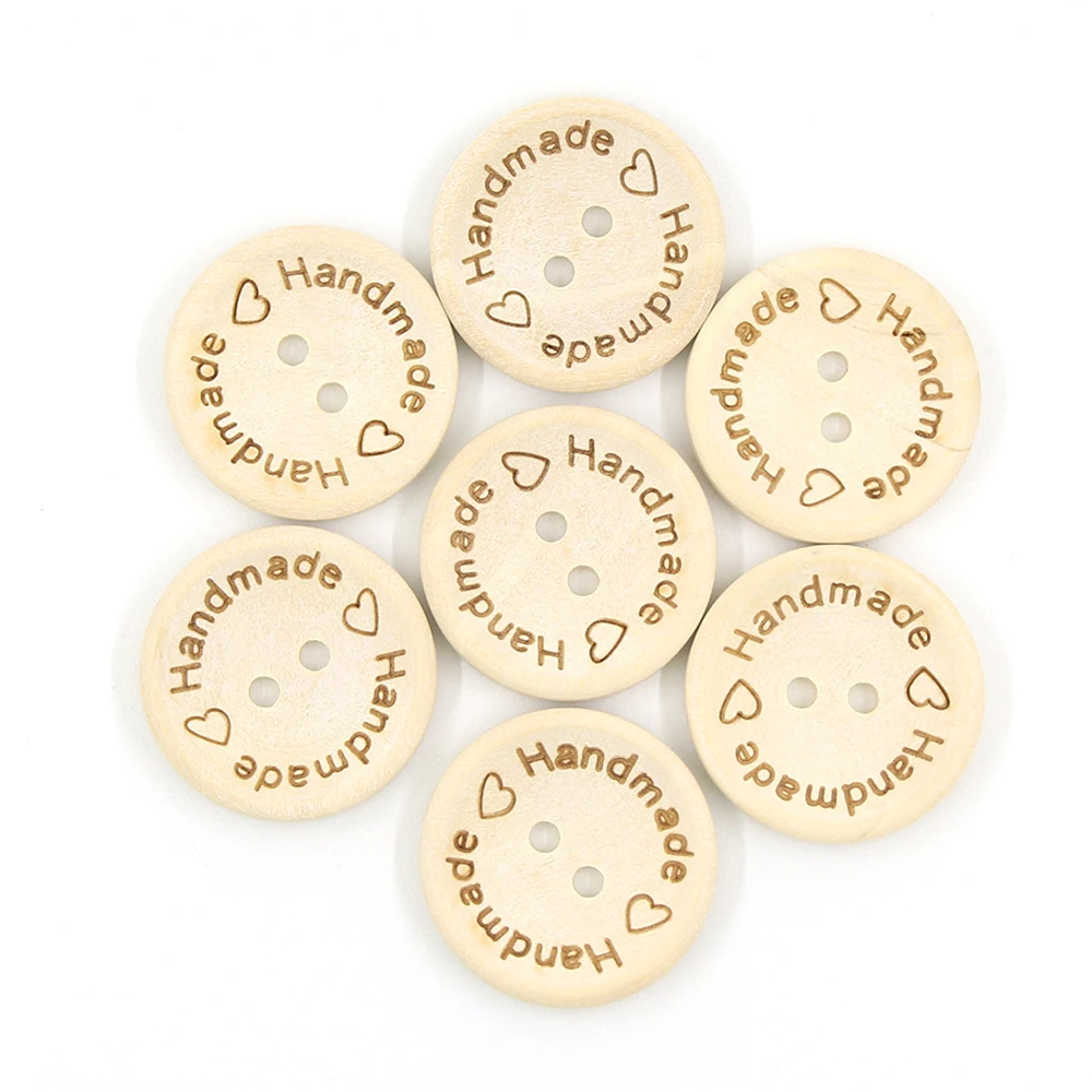 Деревянные пуговицы ручной работы с надписью With Love, 2 отверстия, круглые пуговицы естественного цвета, Детские пуговицы для скрапбукинга, рукоделия, пуговицы для шитья, 50 шт.