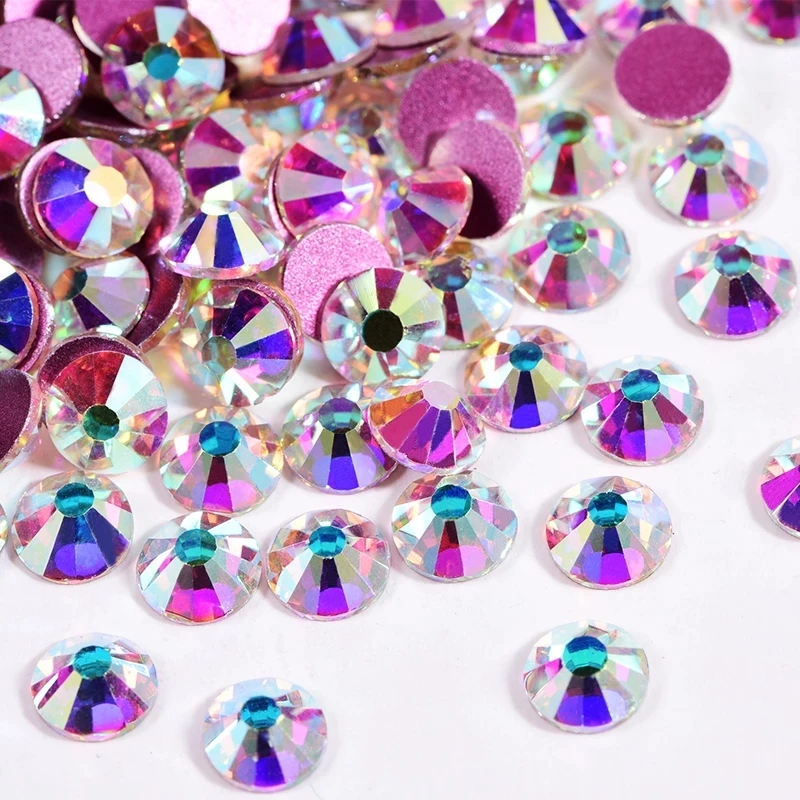 Высококачественные стеклянные блестящие стразы с кристаллами AB SS3-SS30, Стразы без горячей фиксации с розовым Золотым дном, украшение для ногтей F0078