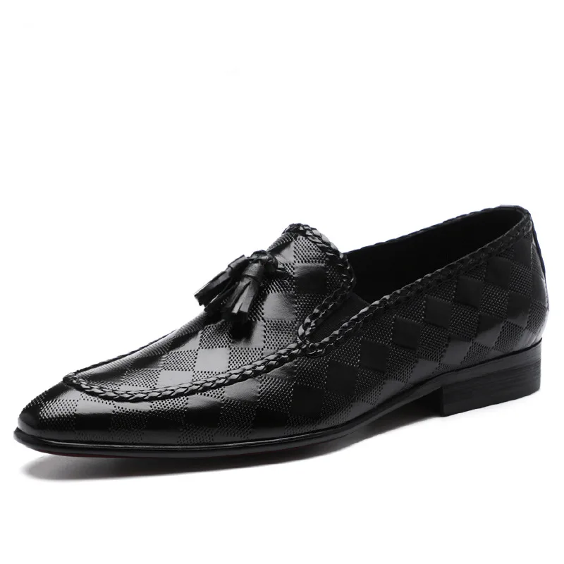 Мужские официальные туфли из натуральной кожи, лоферы с бахромой, мужские черные классические туфли, свадебные туфли, Кожаные броги без застежки, 2022