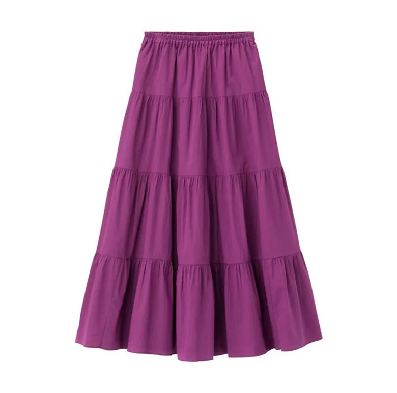 Женская юбка с оборками, модная летняя юбка из хлопка и льна, Длинные вечерние юбки макси красного, фиолетового, розового цветов, весна-осень 2022