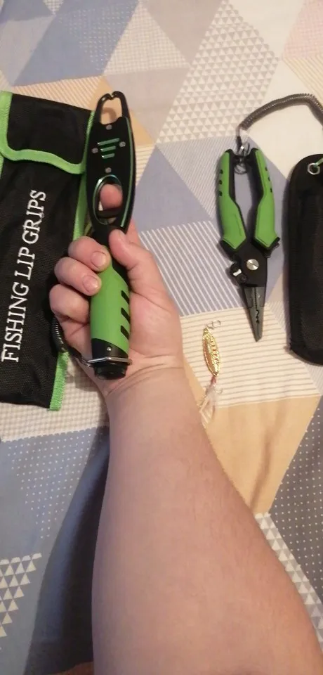 Лип-грип и плоскогубцы просто огонь. Скоро подарю брату. Думаю, он будет в восторге. Спасибо за подарок - блесну. Пришли быстро за 21 день до Краснодара. Брал на распродаже за 1761,22. Со скидкой Али, продавца и монетами вышло 1438р. Выполнены очень качественно. Плоскогубцы не люфтят, все зубчики идеально совпадают, кусачки режут. Липы разжать руками невозможно, большую рыбу удержат. Шкалу весов ещё не испытывал и не калибровал. Все инструменты со своими чехлами с креплением на пояс. К чехлам пристегиваются гибкими троссиками. Продавца и товар рекомендую, однозначно!