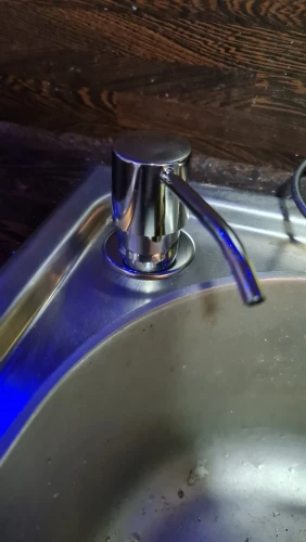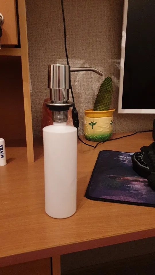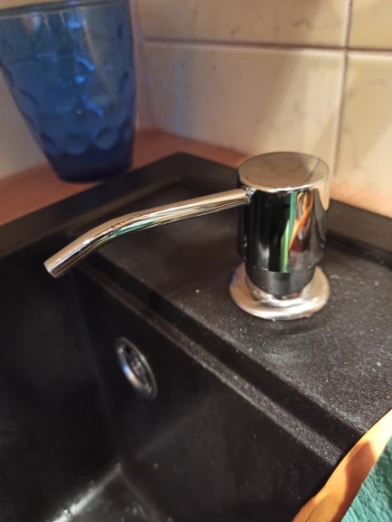 Хорошая штучка, учитывая ценник. Отверстие в мойке 32мм перекрывает полностью. Носик дозатора свободно вращается. Можно повернуть в сторону, чтоб не мешал мыть посуду. Посмотрим как долго протянет это чудо))