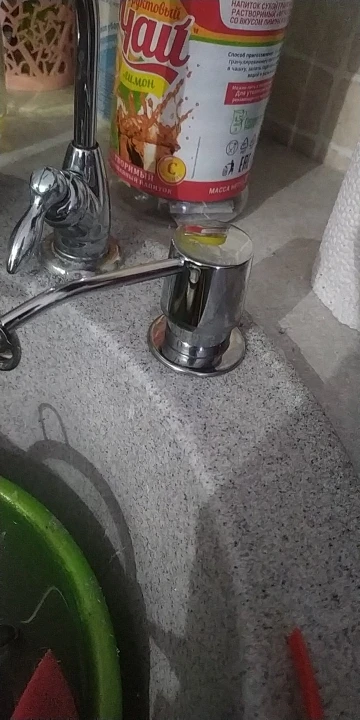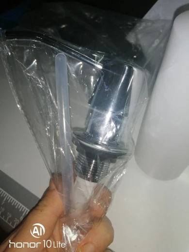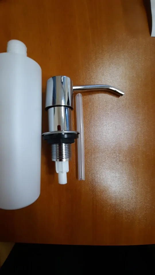 Доставка быстрая- Воронежская обл. всё целое. Установил работает, заливка мыла сверху, бутылку ненужно каждый раз откручивать.
