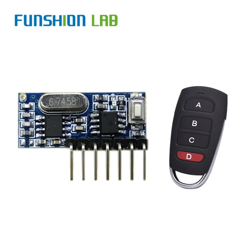 Пульт дистанционного управления FUNSHION RF, 433 МГц, 4 кнопки + модуль приемника, фиксированный EV1527, декодирование, 4-канальный выход, Обучающий набор сделай сам