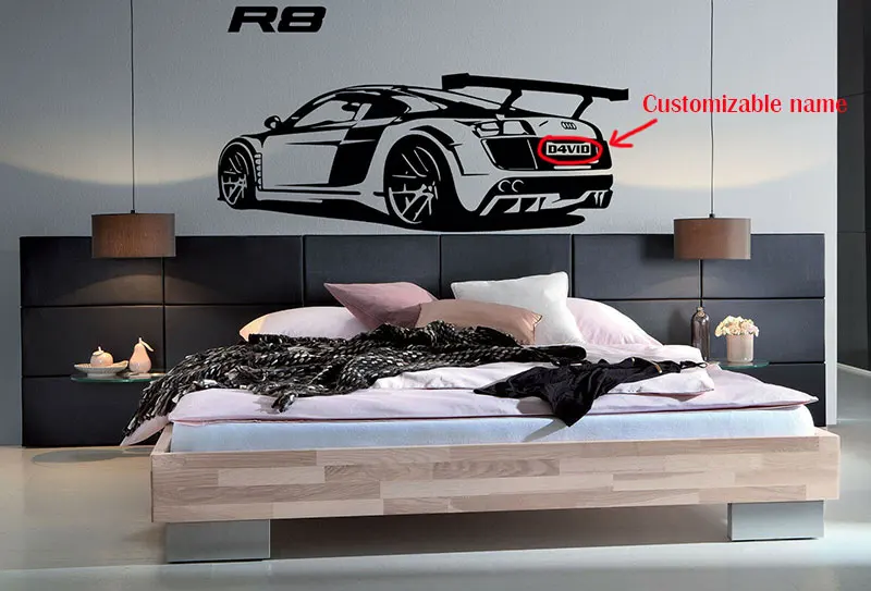 Наклейка на автомобиль с именем на заказ, наклейка для гонок R8 Gt, украшение для гостиной, украшение для комнаты мальчика, гаража, наклейка для автомобиля, клуба QC16