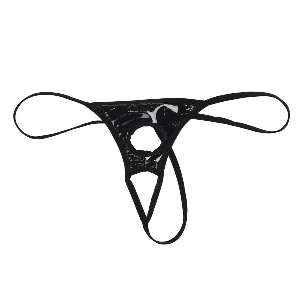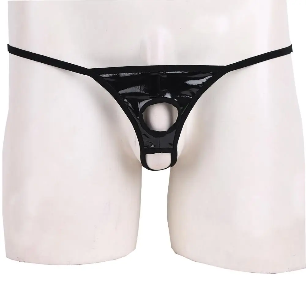 Эротическое мужское нижнее белье для геев, стринги, трусики бикини, кожаный сетчатый бандаж, трусы с отверстиями для пениса