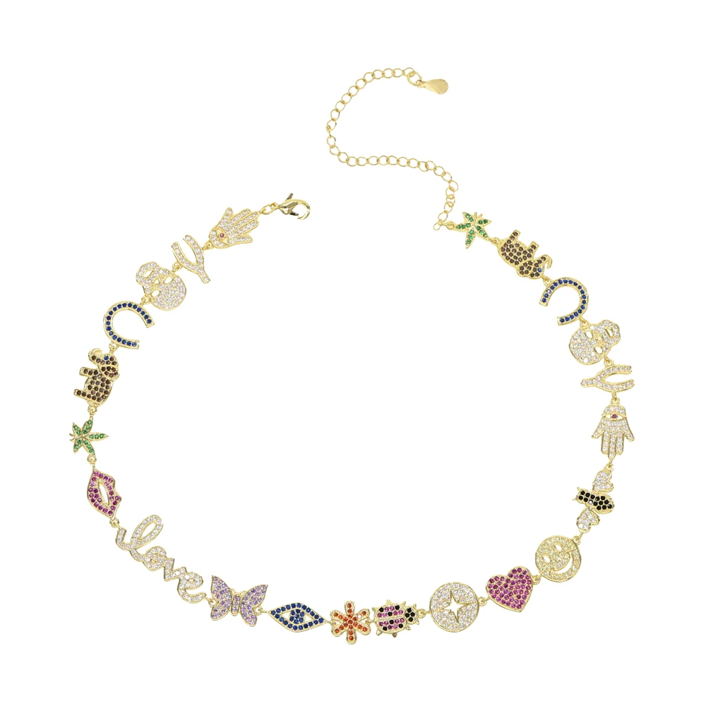 Разноцветное ожерелье-чокер с радужными фианитами для женщин, Короткое свадебное ожерелье, сердце, улыбка, глаз, поцелуй, кулон, ювелирные изделия, подарок