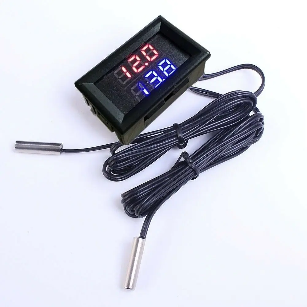 DC 4-28 в красный + синий двойной дисплей цифровой термометр с NTC водонепроницаемый металлический зонд