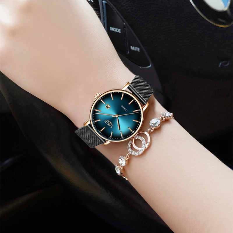 Часы женские кварцевые, водонепроницаемые, с сетчатым ремешком