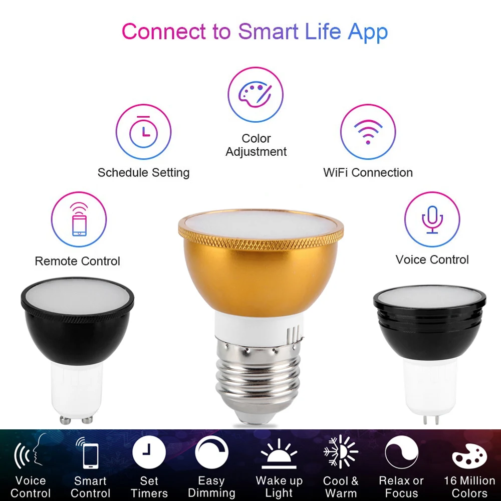 Умная Светодиодная лампа-прожектор с Wi-Fi, 6 Вт, E27, E26, GU10, Gu5.3