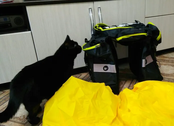 Товар не соответствует описанию: 75 литров в нем никак нет! На фото моя небольшая кошка в сравнении с велоштанами кажется громадной. Попыталась засунуть в каждый отсек пустые 5-литровые бутылки, еле вместились в каждый по 2штуки, итого: в каждом боковом отсеке максимум 10л. и в верхнем 10литров, всего -около 30(!),но никак не 75!!!!!!!!