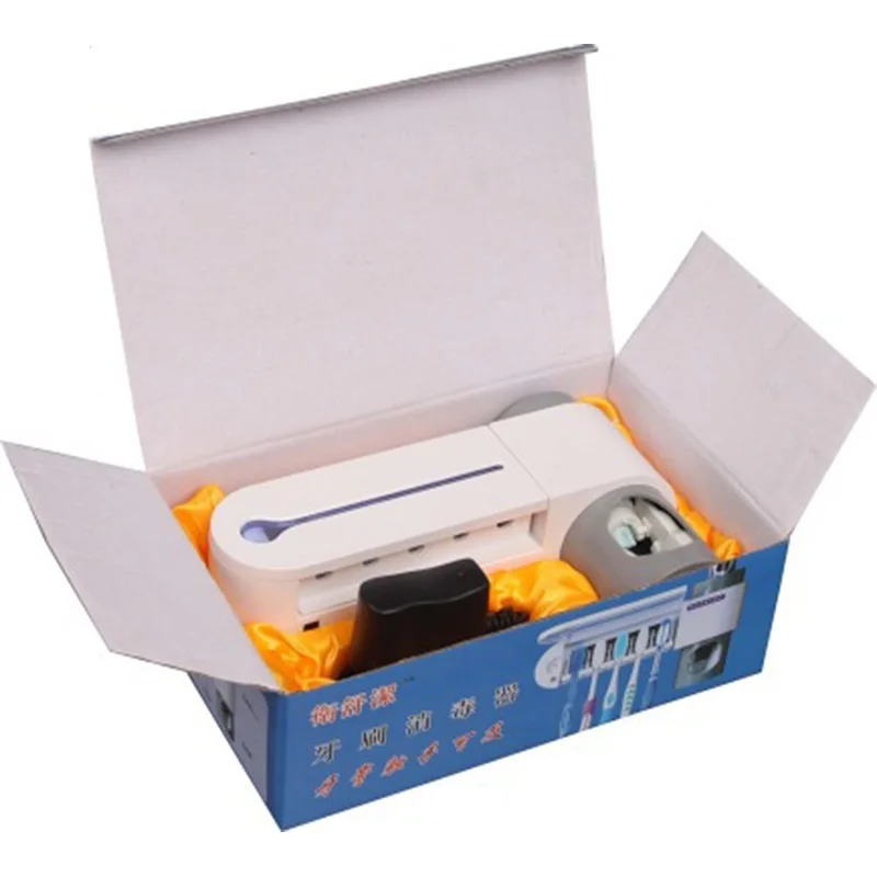 1 стерилизатор зубной щетки + диспенсер для зубной пасты 1 адаптер 1 клейкая подушечка