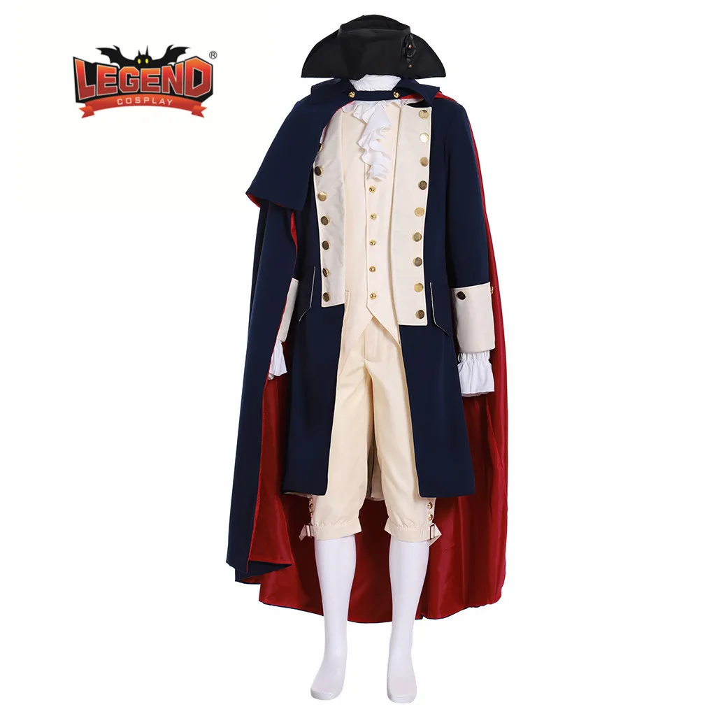 Поворот: WASHINGTON'S SPIES, костюм для косплея, наряд Джорджа Вашингтона, синяя куртка, костюм для косплея с накидкой