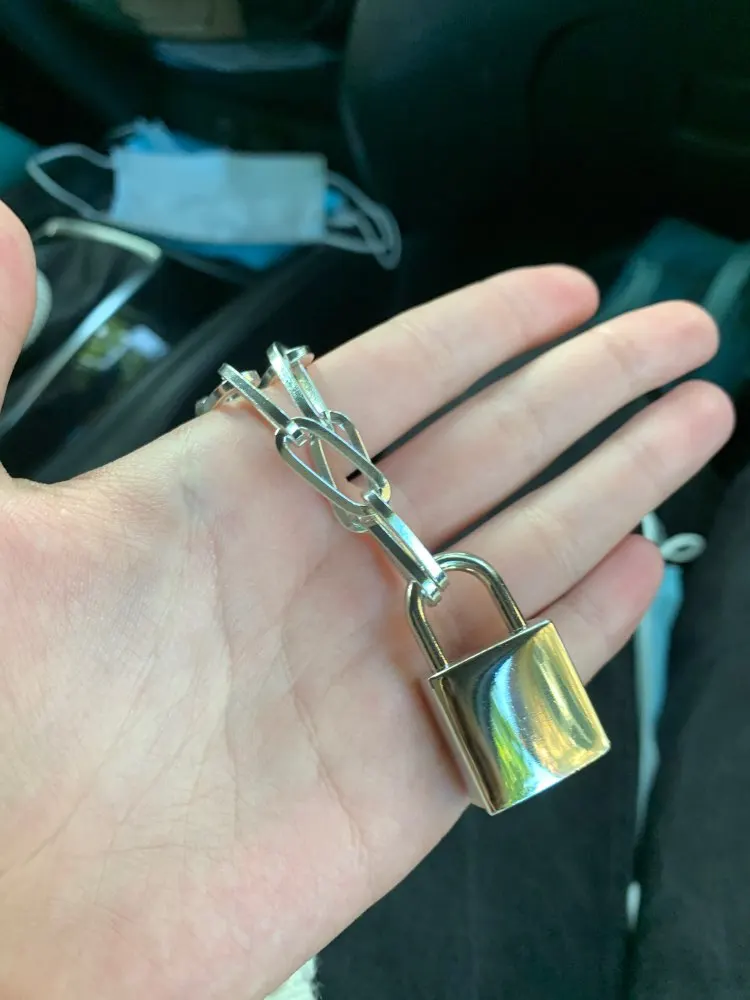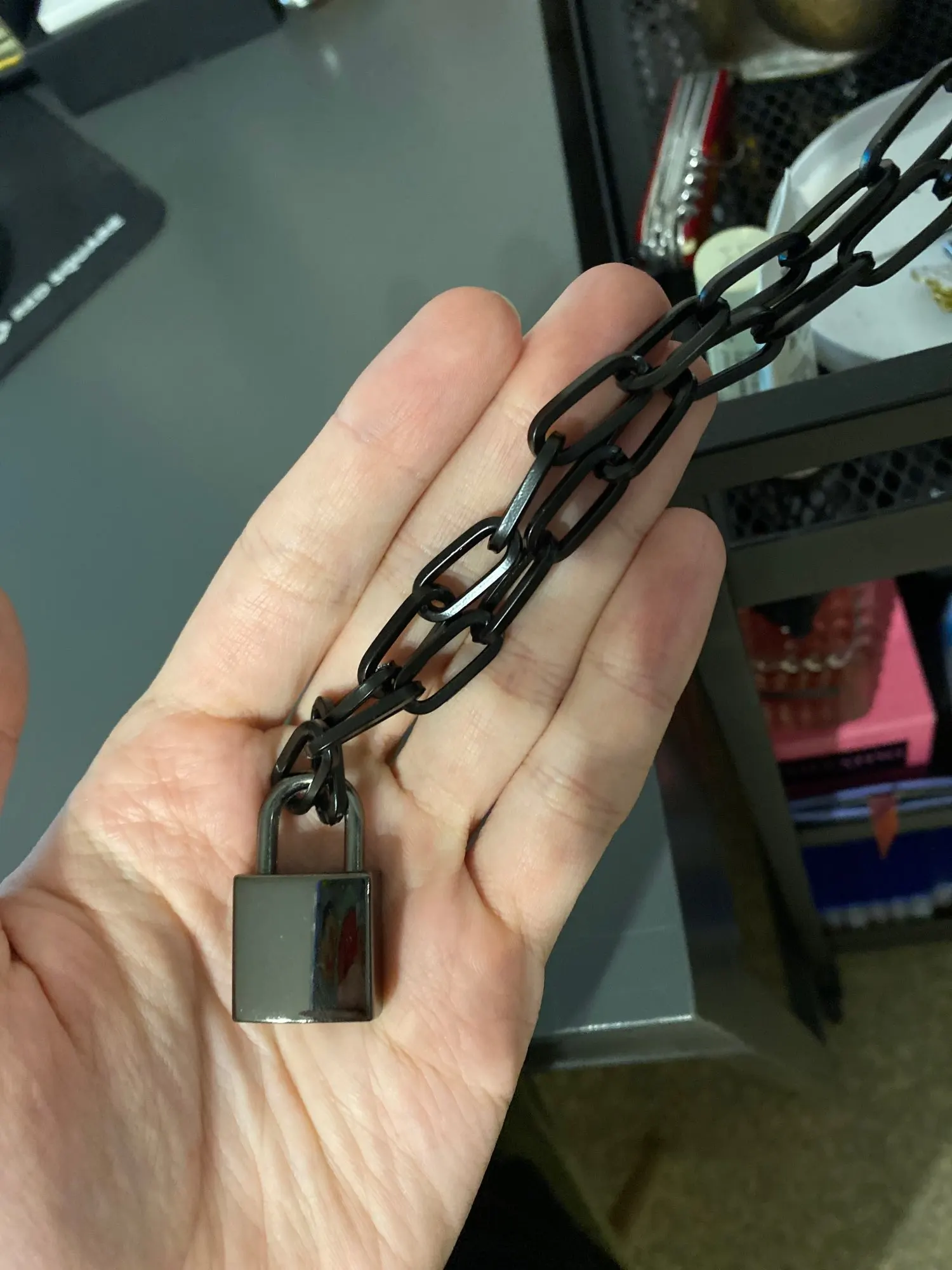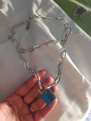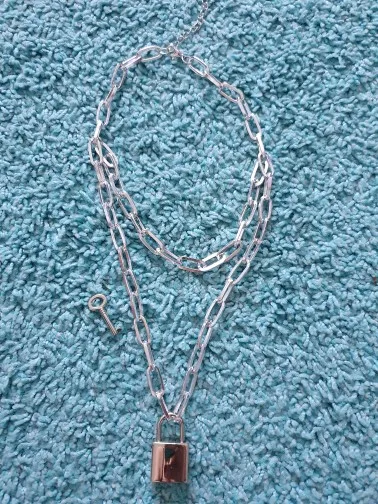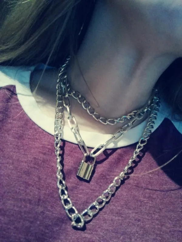 Думала, что звенья цепи будут более тяжелыми и массивными, а они оказались тоненькими и легкими, но и так норм. К цепочке просто с замочком приложен ключик и замок работает. Три цепи можно носить по отдельности