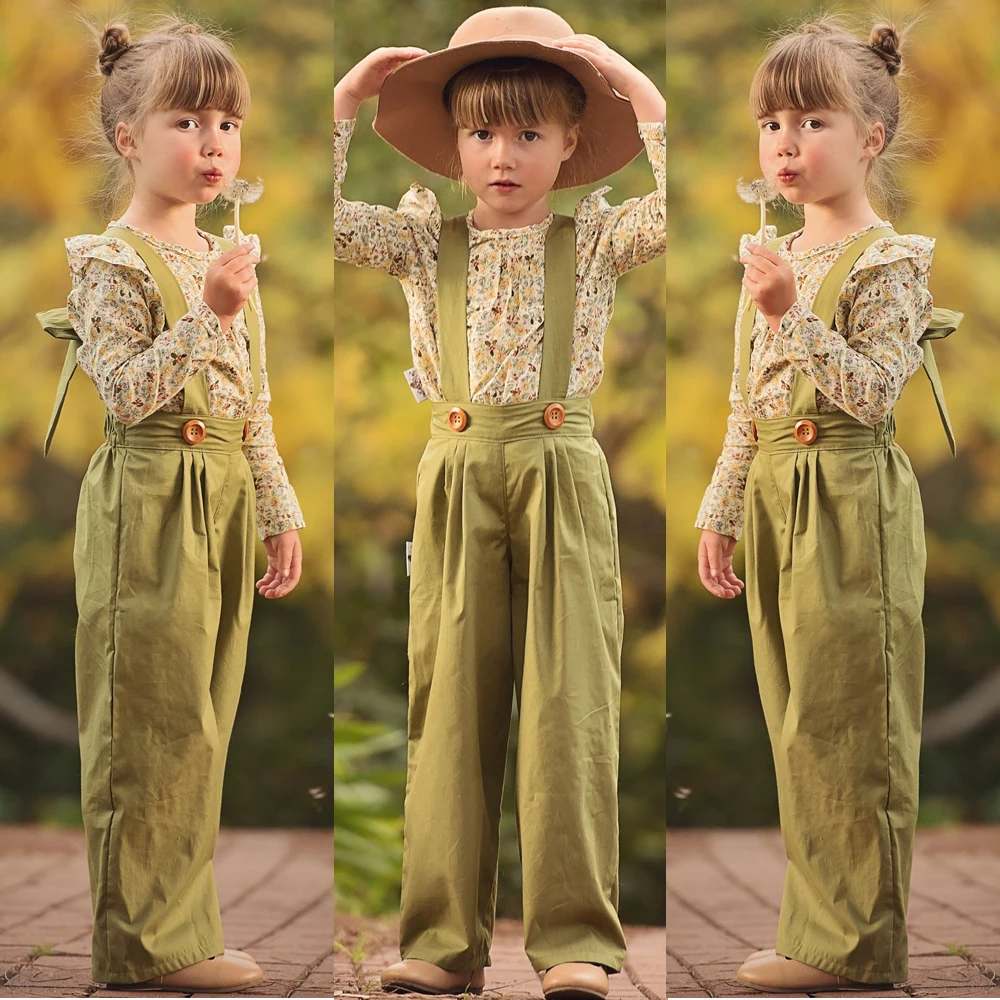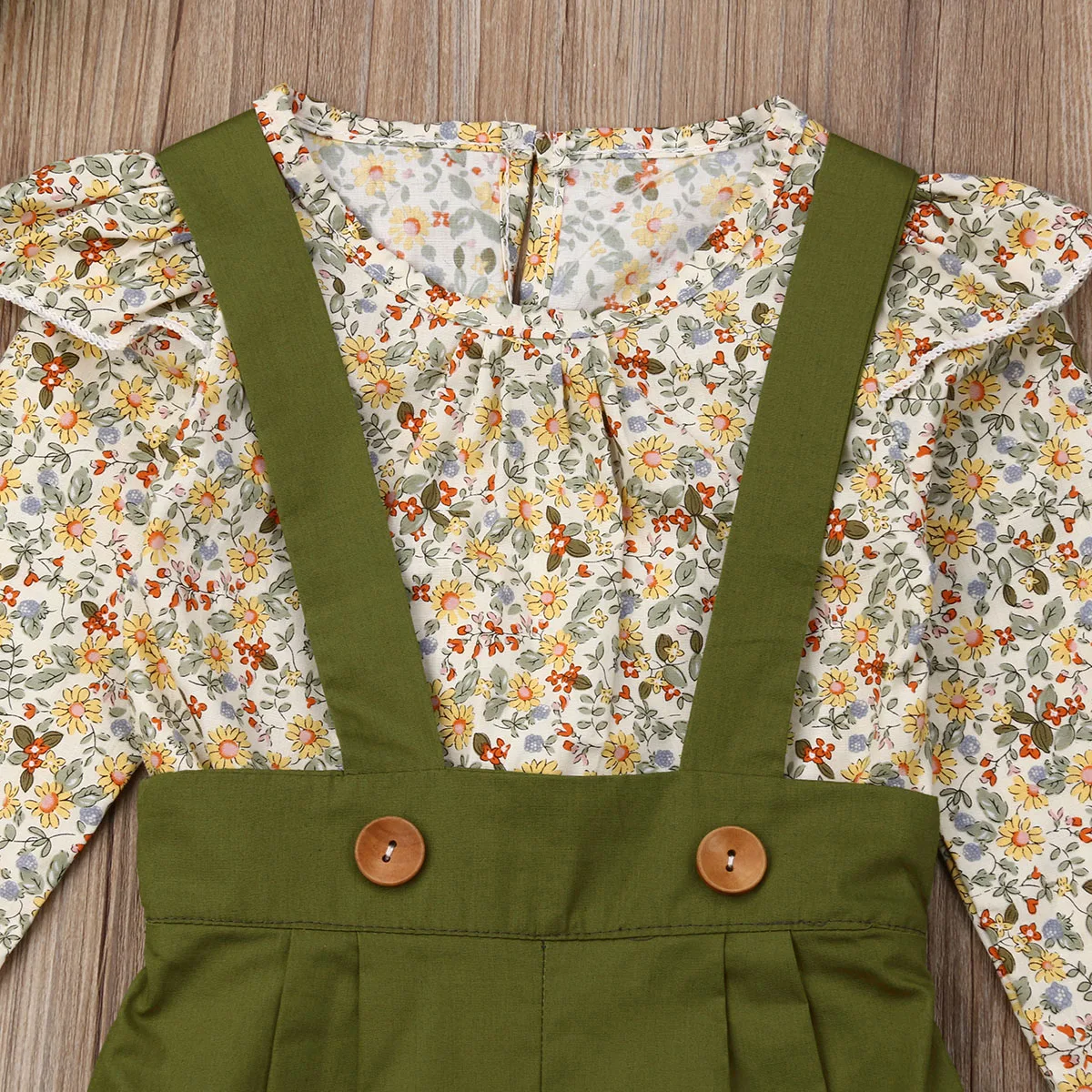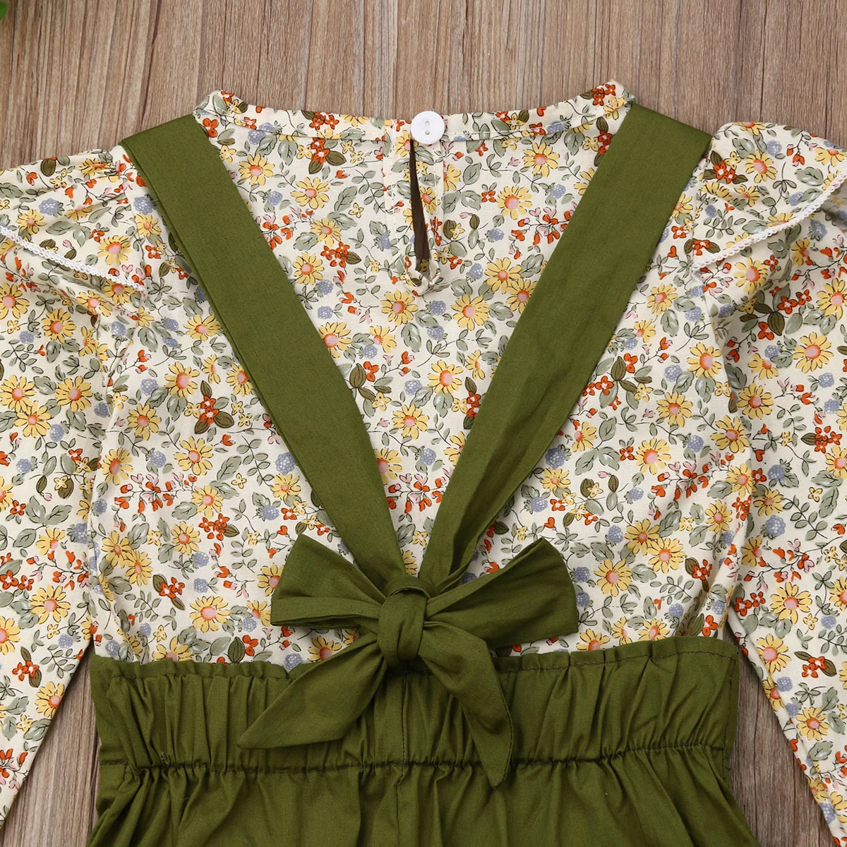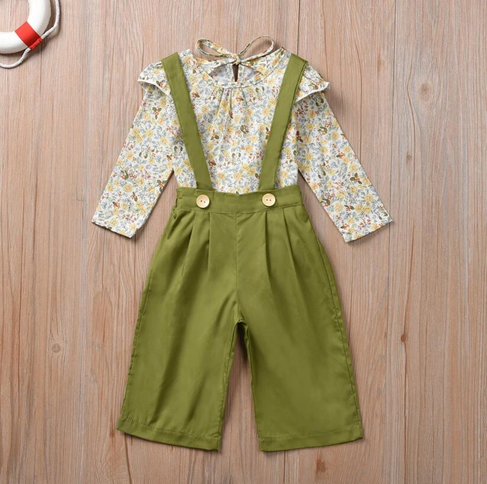 Комбинезон для девочек, зимний топ с цветочным принтом + штаны, 2 шт.