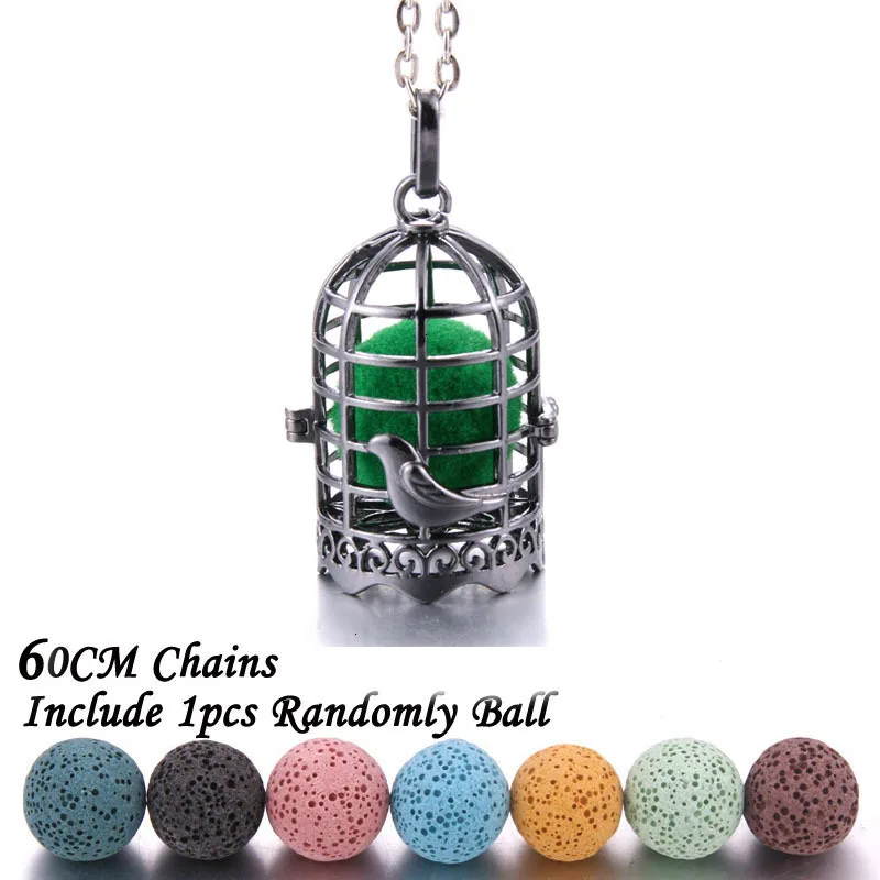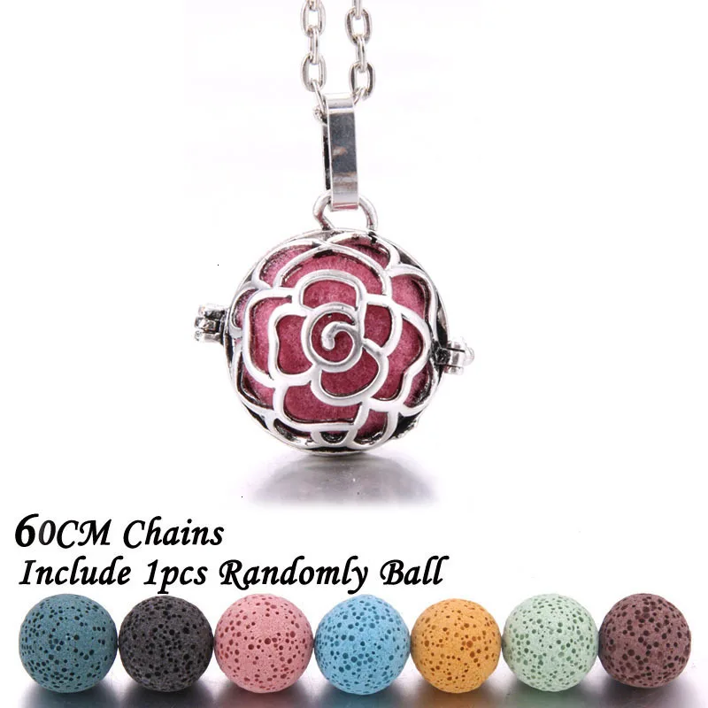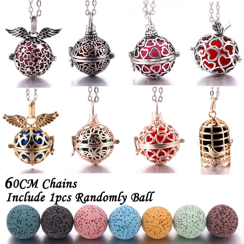 Новинка, золотая бижутерия для ароматерапии, винтажная Цветочная клетка, натуральный камень, лава, ароматические диффузоры ожерелья, подвеска для духов