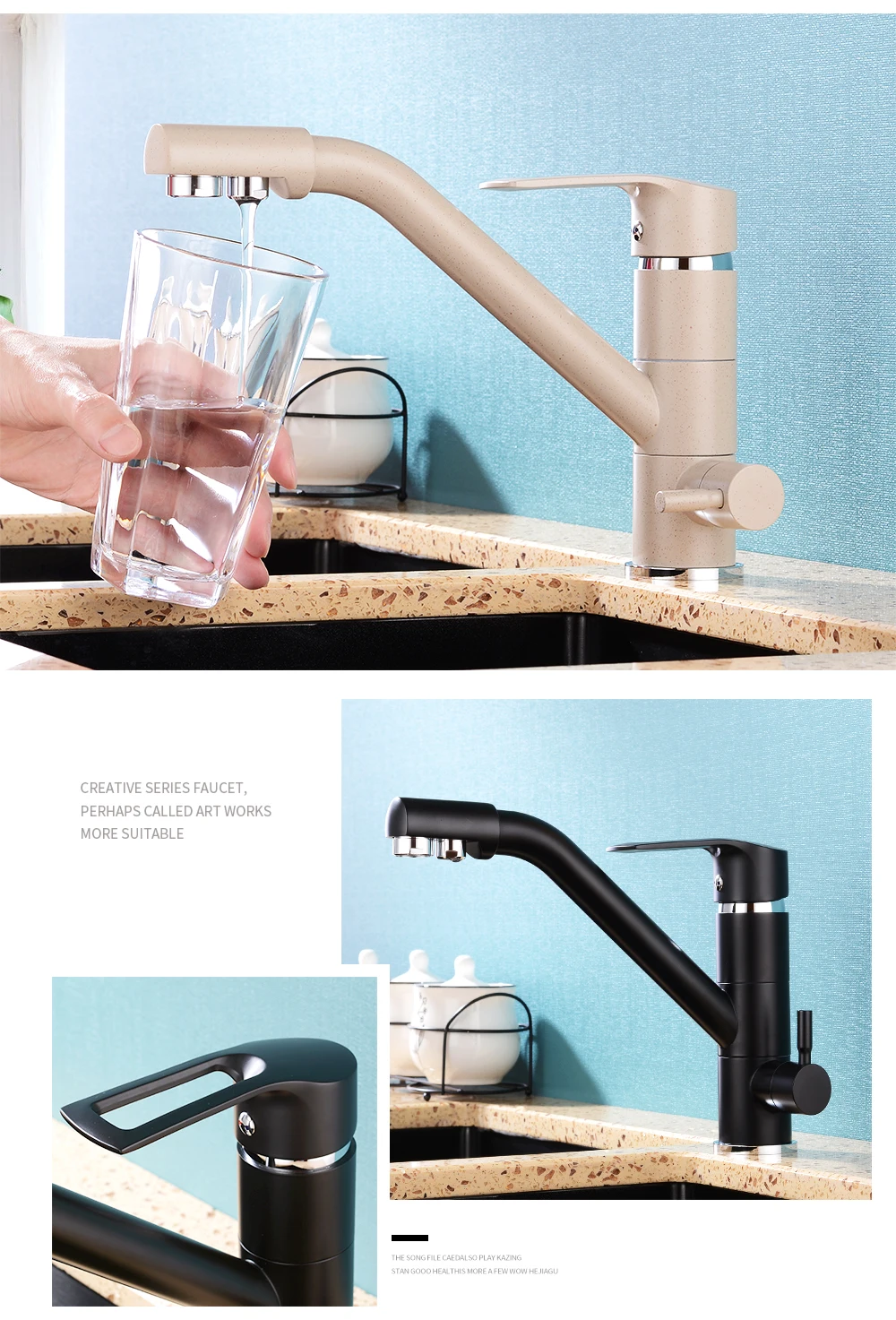 Смеситель для питья с фильтрованной водой, поворотный кран с двойным носиком, для горячей и холодной воды