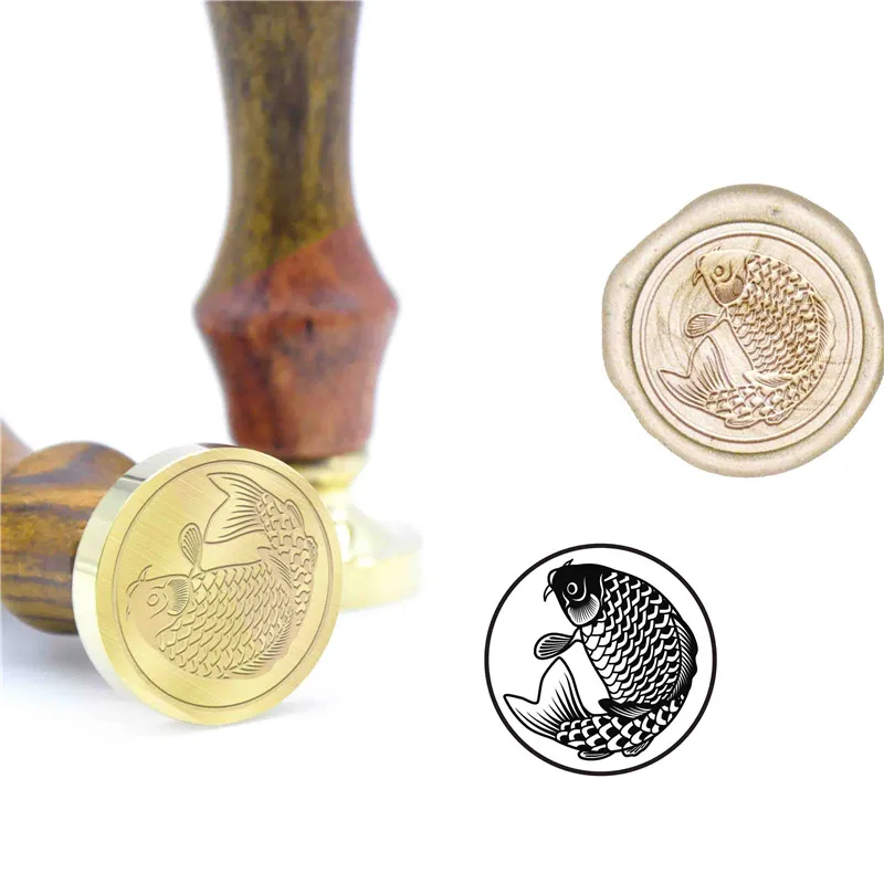 Сургучная печать рыбы Набор восковых печатей с Свадебная Печать комплект приглашения уплотнения B62 таможенная печать Начальная штамп деревянной ручкой DIY, иных металлических