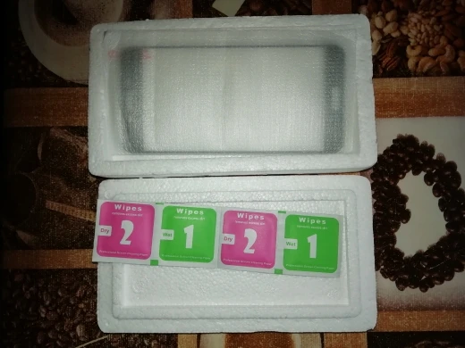 Стекла целые, есть спиртовые салфетки, но не идёт в комплекте почему-то липких стикеров, у других продавцов они есть