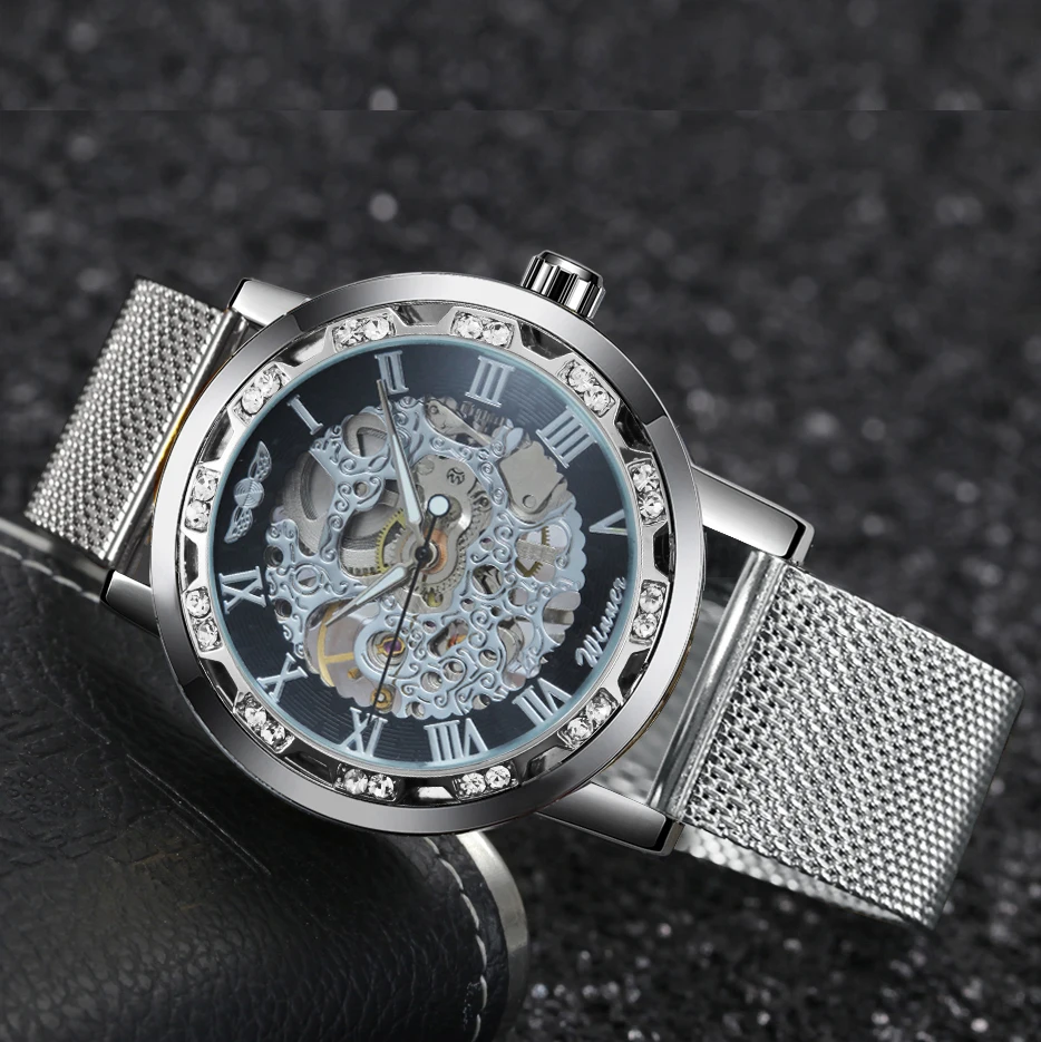 Победитель официальные роскошные часы мужские часы Скелетон механические сетки ремешок алмаз Iced Out ультра тонкие новые модные мужские наручные часы