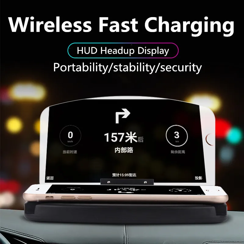 Проектор навигации HUD с высоким разрешением, держатель беспроводного зарядного устройства для Samsung Galaxy S9, S8, S7, для iPhone X, 8, XS