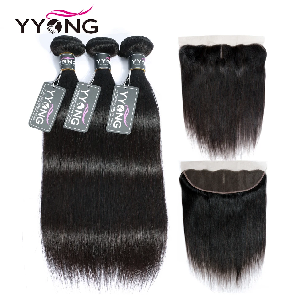 YYong 13x4 кружева фронтальные с пряди перуанские прямые пряди с фронтальной Remy человеческие волосы уха до уха Кружева Фронтальные с пряди