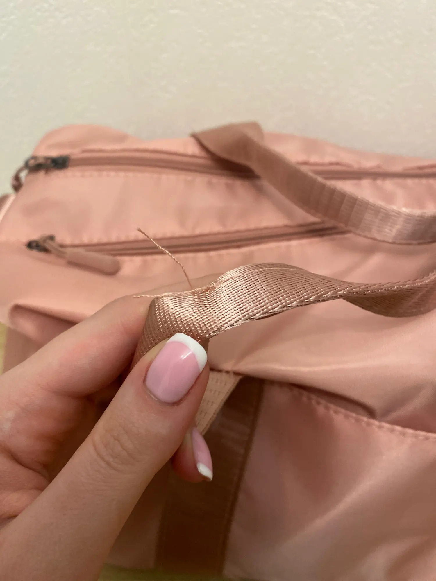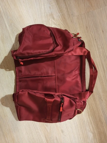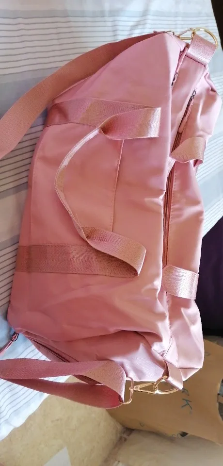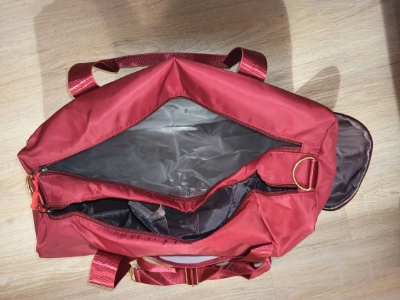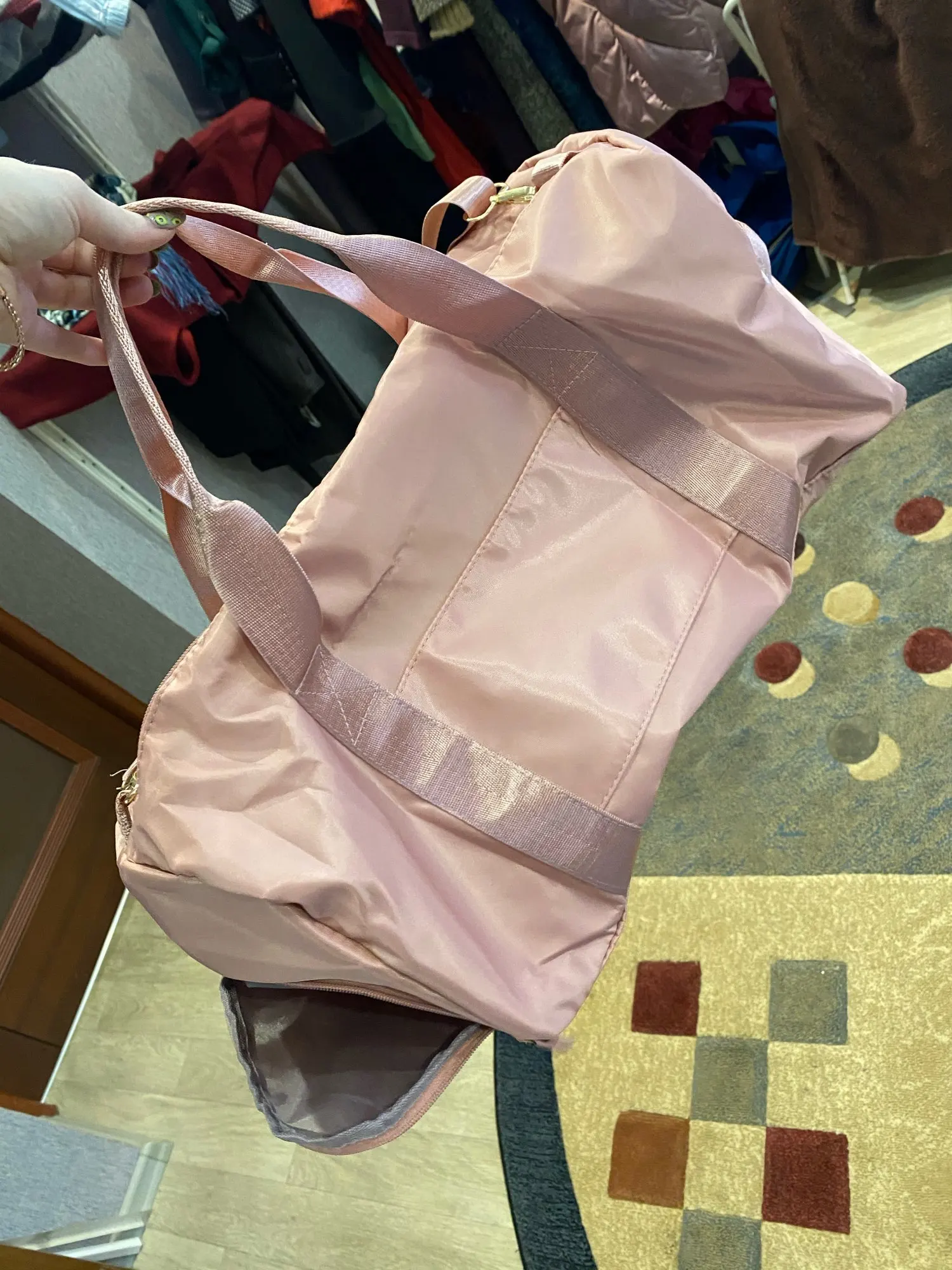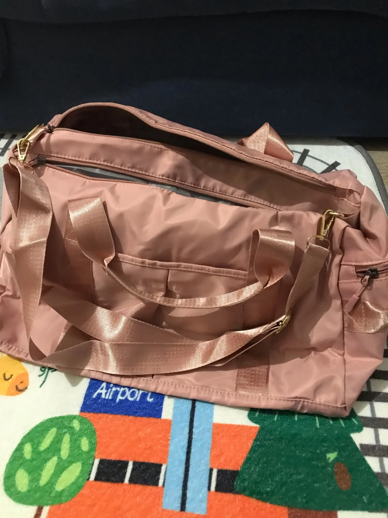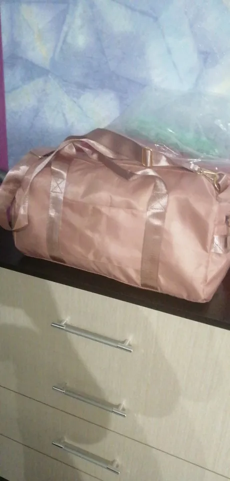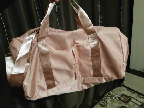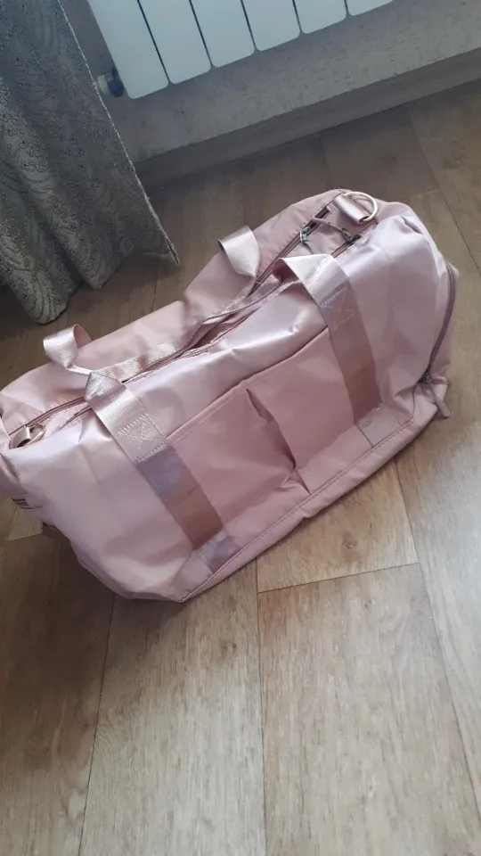 Отличная сумка, просто прекрасная! Имеется основной отдел, отдельный карман для чего то мелкого (я расческу положила и бутылку с водой), а самое главное отдельный карман для обуви, не надо больше обувные сумки носить. Качество отличное, цвет пудровка розовый.
