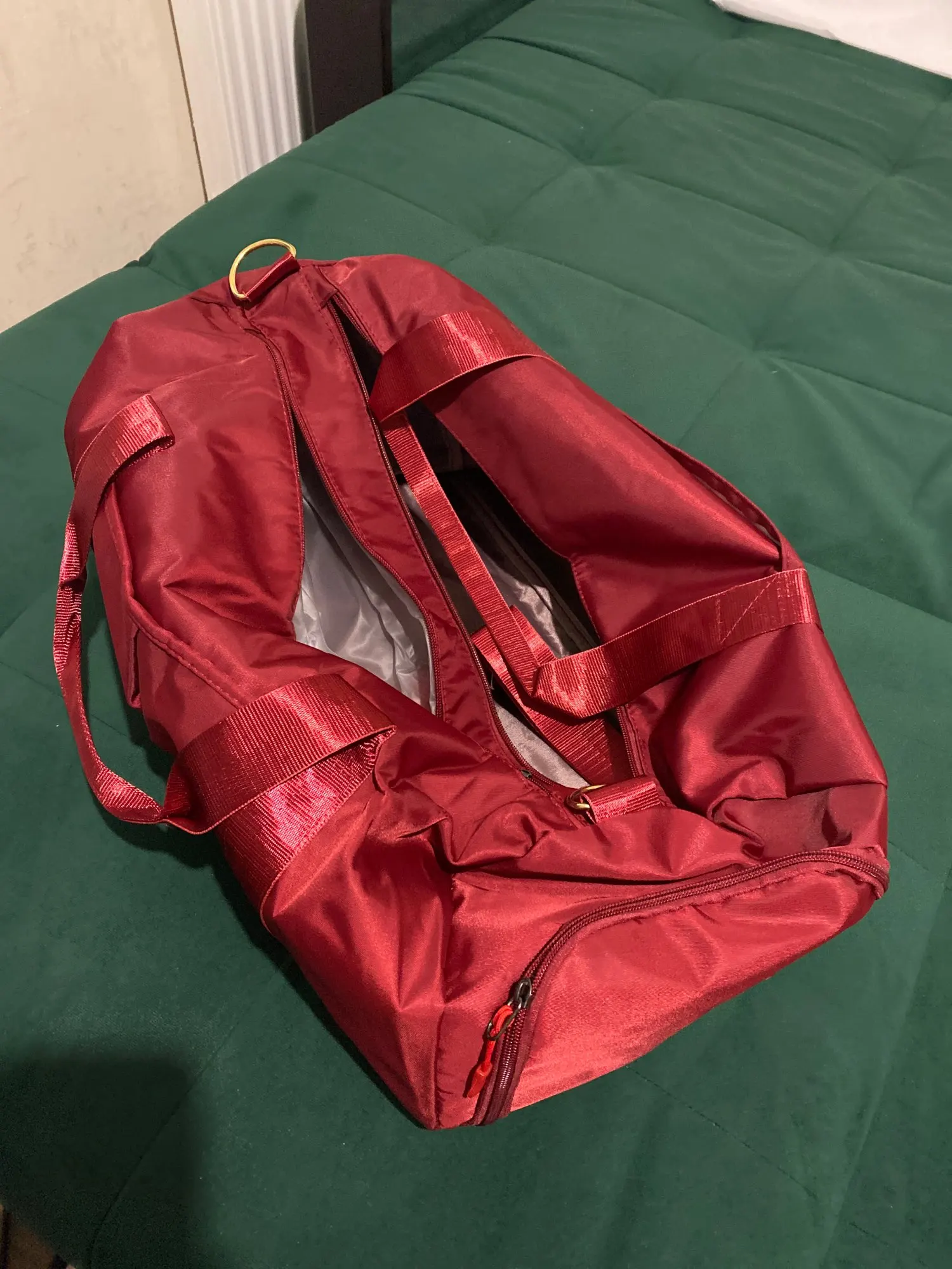 давно смотрела на эту сумку. и вот на скидках наконец купила. я занимаюсь экзотик пол денсом поэтому обувь у меня специфичная и в отдел для кроссовок с натяжкой и подворотами влезла. общее отделение большое и удобное. есть потайной карман для мелочей. сверху доступно отделение для мокрых вещей. с фронтальной стороны есть мини карман для номерков/ключей/мелочевки. так же габариты сумки идеальны чтобы брать ручной кладью в самолет. цвет приятный "пыльная роза" подойдет к спортивному и кэжуал стилю одежды. покупкой довольна не зря долго выбирала.