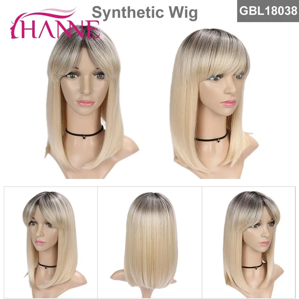HANNE, короткий синтетический парик, парик из термостойкого волокна с эффектом омбре от черного к светлому, с бесплатной Челкой Для чернокожихбелых женщин