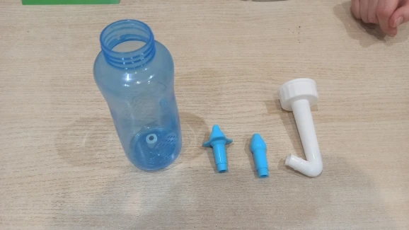 Бутылочка большая, не особо удобно держать, но это я сама виновата, а так очень хорошая, пришла как раз во время, когда ооочень надо промывать нос. Легко пользоваться, покупкой давольна