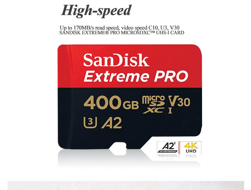 Карта памяти MicroSD SanDisk V30, U3, класс 10, A2, A1, до 100%, 400, 170 ГБ, для смартфонов